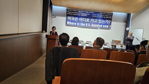 일본 도쿄전력의 후쿠시마 원전 핵폐수 방류를, 미국을 비롯한 서방국가들은 왜 용인하는 것일까?지난 10월 18일 서울 정동 프란치스코 교육회관에서 이 문제를 중심으로 한 세미나 ‘미국은 어디로 가고 있는가? 바이든의 핵폐수 방출 용인의 본질을 진단한다’가 열렸다.한반도평화경제 공동의장인 강경숙 원광대 교수가 사회를 본 이날 세미나에서는 발제자로 김준형 교수(한동대, 전 국립외교원장)(“냉전이후 미국사회의 흐름과 전망一트럼프, 바이든 그리고 그 다음은?”), 남기정 서울대 일본연구소 교수(“미중 대립국면과 일본 그리고 한반도 상황”)