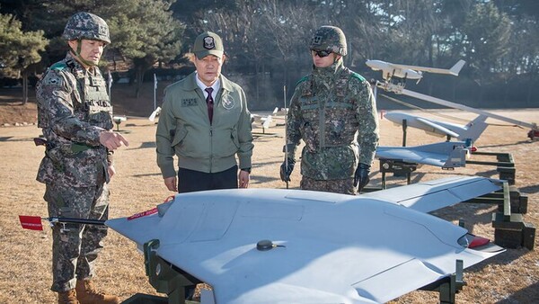 미국을 등에 업고 북을 깔보는 것이 체질화된 윤석열은 당장에라도 북에 무인기를 침투시키고 싶었을 것이다. 그런데 당시에는 한국군의 드론 역량이 취약했다. 윤석열은 그 문제를 해결하기 위해 2023년 9월 1일 한국군 드론작전사령부를 창설했다. 2024년 1월 8일, 당시 국방부장관이었던 신원식은 드론작전사령부를 방문해 옥외에 전시된 각종 무인기를 살펴보았는데, 다음은 이를 보도한 사진이다.