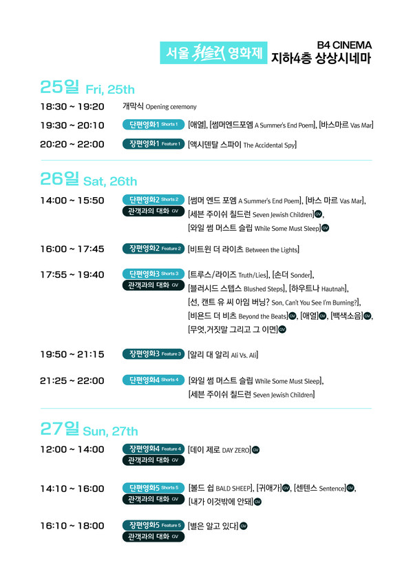 * 서울휘슬러영화제는 시민언론 민들레와 공동주최로 10월 25일(금)부터 27일(일)까지 3일간 서울 홍대 인근 상상마당에서 열릴 예정이며 예매 링크는 다음과 같다.