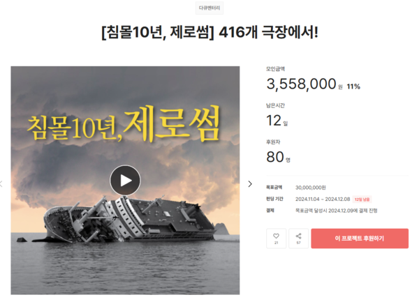 ‘침몰 10년, 제로썸’ 상영관 확보를 위한 텀블벅 사이트 바로가기