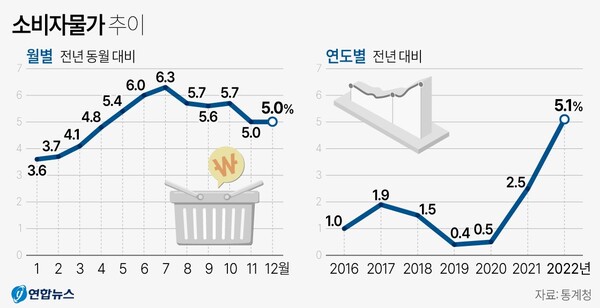 ◇ 12월 물가 상승률 5.0%…8개월 연속 5% 웃돌아