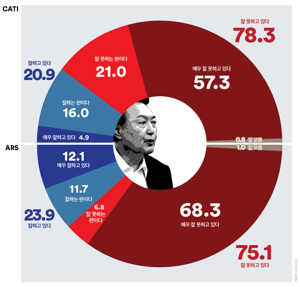 부정평가 80% 눈앞, 극부정층 ARS 68.3%