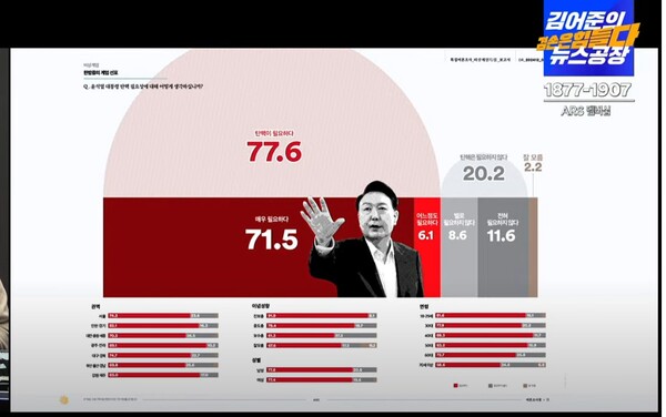 여론조사꽃 ‘탄핵 찬성’ 77.6% ‘내란 행위’ 74%