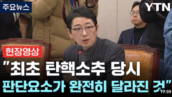 YTN이 전한 <현장영상+/“탄핵 사유의 80% 날아갔다는 게 대통령 측 주장”>(1월 7일)의 경우 헌법 재판 취지에 맞게 형법 위반 여부가 제외된 탄핵소추안을 놓고 벌어진 여야 의원들의 현안질의를 보도하면서 “탄핵 사유의 80%가 날아갔다는 게 대통령 측 주장”이라는 주진우 국민의힘 의원이 전한 대통령 윤석열 주장만 제목에 반영했다. 이 기사의 유튜브 썸네일 제목도 <현장영상/“최초 탄핵소추 당시 판단요소가 완전히 달라진 것”>으로 역시 주진우 의원의 주장을 일방적으로 내세우고 있다.