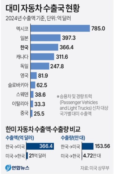 미국 물품에 대한 관세율 0.002~2.003%인 자유무역협정 상대국 한국의 지난해 대미 무역 흑자액은 660억 달러를 넘어 미국의 무역적자국 순위에서 8위를 기록했다. 자동차와 반도체가 한국 대미 수출의 40% 이상을 차지하는 상황에서 대미 수출비중 1, 2위인 자동차와 반도체 수출이 상호관세로 위축된다면 한국경제 전체가 어려움에 부닥칠 가능성이 높다. 미국은 보조금과 환율, 부가가치세 등 비관세장벽들을 문제삼아 양보를 끌어내려 할 가능성이 있다.
