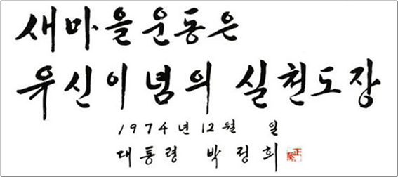 새마을이라는 말은 '우리'의 강점인 전통적인 공동체의식을 당시 정권이 자신의 업적으로 치장하는 과정에서 나온 용어다. 본질은 토건공사 위주의 수직적인 상명하달과 관계 있다. 만주에서 일본의 방식을 배운 일제 만주군 장교 출신의 박정희 독재정권이, '10월유신이 곧 새마을운동'이라고 내세운 이유이기도 하다. 조직적인 동원을 통해 농촌의 토목공사를 획책하는 그 과정은 일본의 무라(村)와 가깝다. '새마을정신'은 '우리'라는 공동체 정신과는 구분되는 것이다.