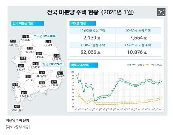 오래된 아파트 시장만 문제가 아니다. 신축시장도 사정이 어렵긴 마찬가지다. 국토교통부가 지난달 28일 발표한 '1월 주택통계'에 따르면 지난달 말 기준 전국 미분양 주택은 7만 2624가구로, 전월보다 3.5%(2451가구) 늘었다. 증가분은 전부 수도권에서 나왔다. 평택에서 미분양이 대거 발생하며 경기 미분양(1만 5135가구)이 한 달 새 2181가구 늘었다.