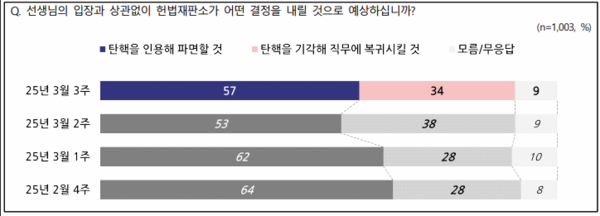 '탄핵할 것' 57%…'인용해야'보다 3%p 적어