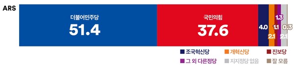 [여론조사꽃] 당 지지도 민주당 51.4% 국힘 37.6%