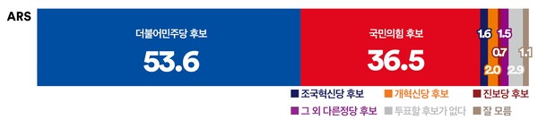 민주당 후보 선호도, 국힘 후보(36.5%)와 17.1%p 차