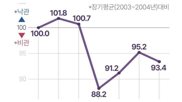3월 지수 93.4…석달 만에 전월비 1.8p 떨어져