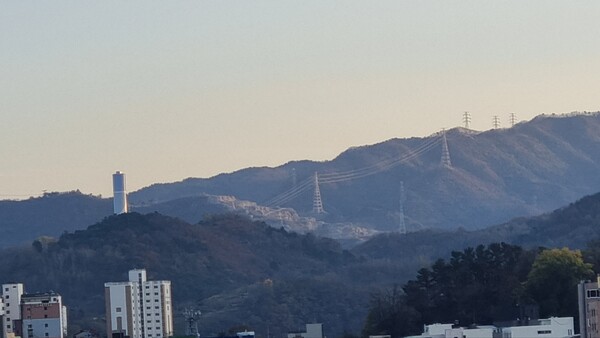 "저게 삼척화력 연돌(굴뚝)이다. 여기는 석탄화력발전소 반경 5Km 지역이다(발전소 반경 5 Km 지역은 법에서도 인정한 발암물질 피해지역이다). 보다시피 삼척은 분지형 지형이라 삼척화력발전소에서 내뿜는 탄소와 오염물질은 고스란히 삼척시에 쌓인다. 이 뿐이 아니다. 시청 뒤 북쪽으로는 5Km도 안되는 거리에 북평석탄화력이 있다. 거기서도 하루 1만 톤의 석탄을 땐다. 삼척은 두 석탄화력발전소의 영향권이 중첩되는 지역이다. 삼척시민은 그야말로 온실가스 안에 든 쥐 신세다.”