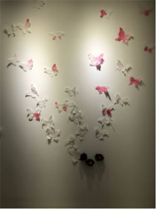 “아직도 그들의 원념이 사라지지 않았다. 떨어진 꽃들이여, 나비로 환생하여 훨훨 날아가기를…” 제목 ‘환생’. (작가 김성심)
