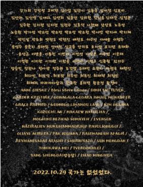 “참사가 벌어졌다. 안타깝고 무서웠다. 그들의 이름도 부르지 못하게 하는 자들, 추모도 못하게 하는 자들은 더 무서웠다. 그들은 숫자가 아니다.” (작가 이정헌)