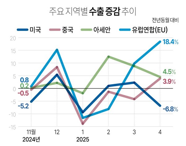 관세전쟁 여파로 4월 대미 수출 6.8% 줄어