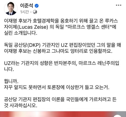 대선 후보 2차 TV 토론에서 이재명 후보는 밥 맥티어, 루카스 자이제 등 경제학자의 주장을 소개하며 이런 공격에 반박했다. 그러자 그 후에 이준석 후보는 '루카스 자이제는 독일 공산당을 지지하는 반자본주의, 마르크스 레닌주의자'라면서 "공산당 기관지 편집장의 이론을 국민들에게 가르치려고 든 것에 사과하라"라고 또 전형적이고 시대착오적인 색깔론을 펴기도 했다.