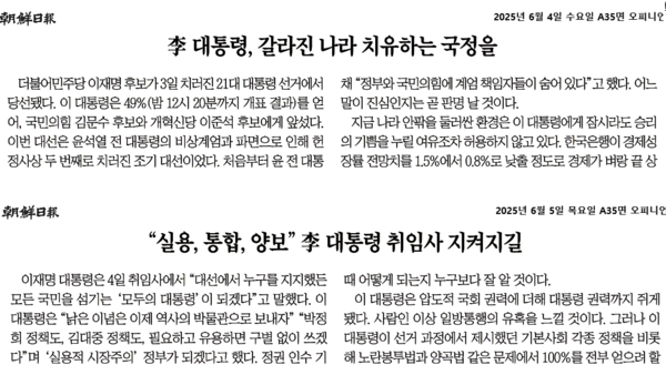 반민족 반민주 방씨조선일보가 애국자 코스프레를 이어가고 있다. ‘오늘 대통령 선거, 갈등에서 통합으로 넘어가길’(6월 3일), ‘이 대통령, 갈라진 나라 치유하는 국정을’(6월 4일), ‘"실용, 통합, 양보" 이 대통령 취임사 지켜지길’(6월 5일). 21대 대통령 선거 전후를 통한 3일 동안의 방씨조선일보 사설 제목이다. 통합과 치유, 실용과 양보를 반대할 국민은 없다. 다만 이런 주장을 하는 세력들의 그간의 행적은 샅샅이 돌아볼 필요가 있다. 특히 언론 내란수괴 방씨조선일보가 보인 범죄 행각을 놓치지 말아야 한다.