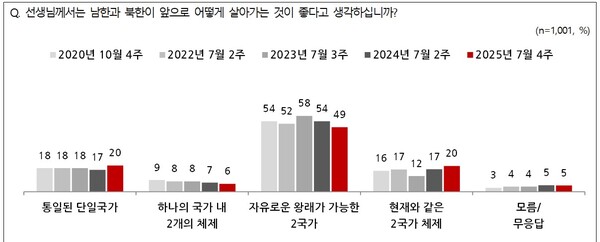 [전국지표조사] ‘자유 왕래하는 2국가 체제’ 49%