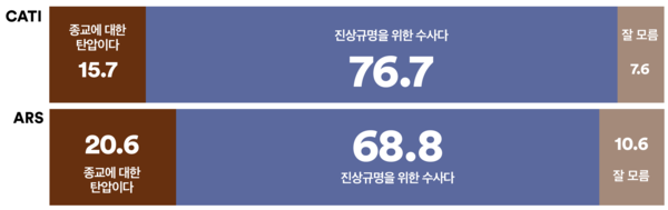 종교단체 압색은 ‘진상규명을 위한 수사’ 76.7%,