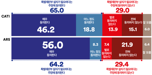 특별재판부 설치 필요성에 대한 동의는 약간 떨어져 ARS 64.2%