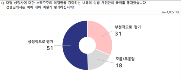 상법 개정안 국회 통과 평가: 긍정 51% 대 부정 31%
