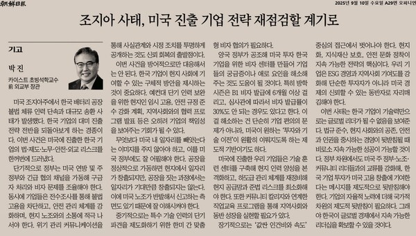 '방가조선일보' 9월 9일과 11일 자에 박진과 장대익이라는 외부 인사가 글을 올렸다. 그들은 나름 전문가라지만 마치 하청을 받은 것처럼 제대로 할 말은 못 하고 방가조선일보의 속내를 그대로 반복하는 데 그치는 듯하여 애처롭다. ‘조지아 사태, 미국 진출 기업 전략 재점검할 계기로’ ‘조지아 사태, 인재 이동의 ‘경험 설계’부터 바로 잡아라’는 제목이다. ‘조지아 사태’라는 작명이 눈에 띈다. 전두환 살인마 정권이 내세웠던 ‘광주사태’의 망령이 어른거린다. 지금이야 ‘광주민주화운동’이라고 부르지만 이조차 정명이 아니라고 생각하는 사람들이 적지 않다. 방가조선일보는 윤석열 내란 정권하에서 벌어졌던 ‘10.29 이태원 참사’라는 어이없는 비극을 ‘핼러윈 참사’로 고집하고 있다. 참사의 본질을 흐려보려는 방가조선일보의 반인륜적 범죄 집단의 진면모가 유감없이 드러난다.