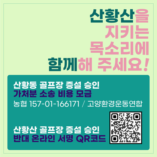 대책위는 산황산 골프장 증설 반대 온라인 서명 운동과 함께 가처분 소송 비용 마련을 위한 모금운동을 벌이고 있다.