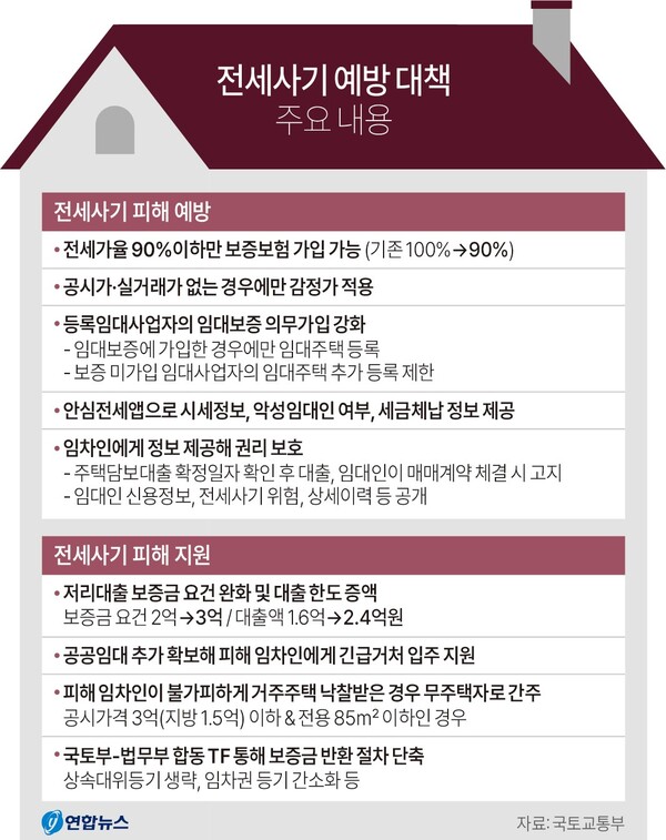 정부는 지난 2일 발표한 '전세사기 예방 및 피해지원 방안'을 통해 오는 5월부터 HUG 전세보증금 반환 보증보험 가입 대상을 전세가율 100%에서 90%로 낮추기로 했다. 집값과 같은 가격에 전세를 들이는 무자본 갭투자 방식으로 주택 수백·수천 채를 사들인 뒤 보증금을 떼먹는 '빌라왕'들의 전세사기를 막겠다는 취지다.