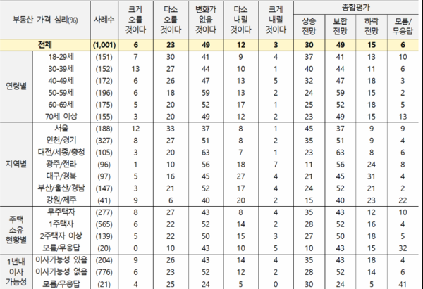 '상승'전망 전국 평균 30%, '보합' 49%, '하락' 15%