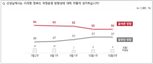 대통령 국정운영 방향성 평가: ‘올바른 방향’ 55%