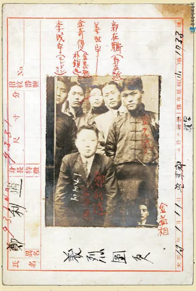 1920년 7월 5일에 체포된 의열단 부단장 곽재기의 카드에는 사진란이 비어 있고, 뒷장의 기록에도 죄명만 ‘치안유지법’으로 기록되어 있는데요. 그런데 그의 카드 앞면 사진 부착란에는 그의 사진이 없는 대신 ‘(의열단원) 사진은 정이소(鄭利逍)를 보라’고 적혀 있었습니다. 정이소의 카드에 바로 김원봉을 비롯한 의열단원 사진이 복사되어 부착되어 있어요. 그런데 정이소라는 인물은 전혀 알려져 있지 않습니다. 이상한 것은 그의 카드 뒷면에 아무 기록도 없다는 것인데요. 그가 체포된 신분이 아니었음을 말하는 것이지요.