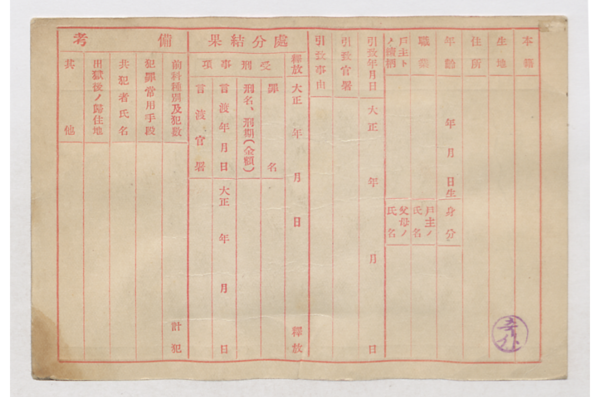 일제 수형기록카드에서 보이는 기개있는 모습들