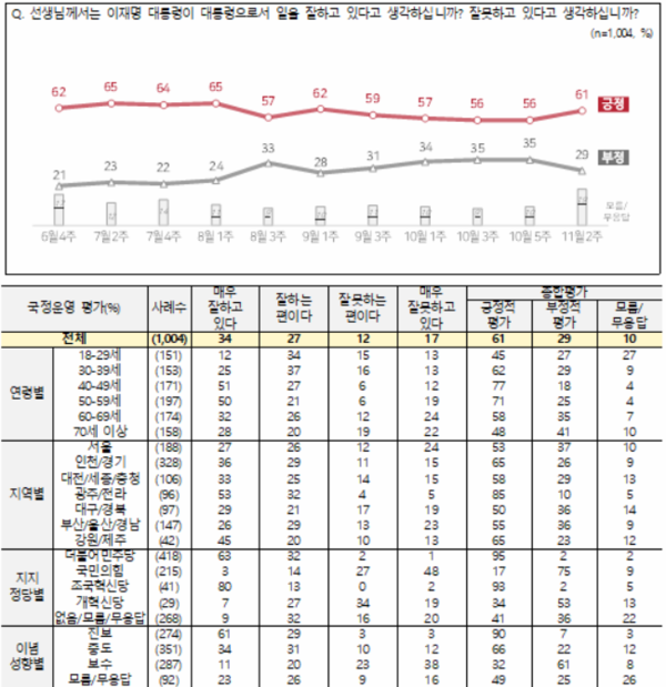 국정운영, 신뢰한다 61% > 신뢰하지 않는다 33%
