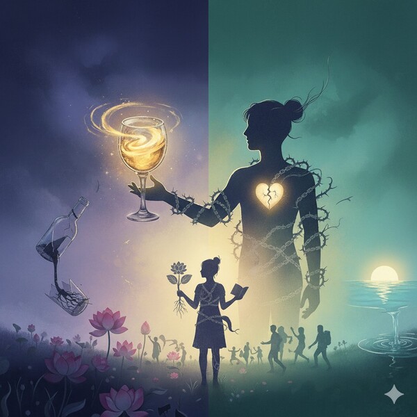 술잔을 들기 전에 잠시 멈춰서 질문해야 합니다. "지금 마시는 이유는 진짜 즐거움인가, 아니면 피하고 싶은 감정인가?" "이다음 날의 나를 위해 지금 무엇을 선택할 것인가?" 이 질문들은 술을 위로가 아닌 유혹으로 인식하게 하고, 다른 선택의 가능성을 열어줍니다.