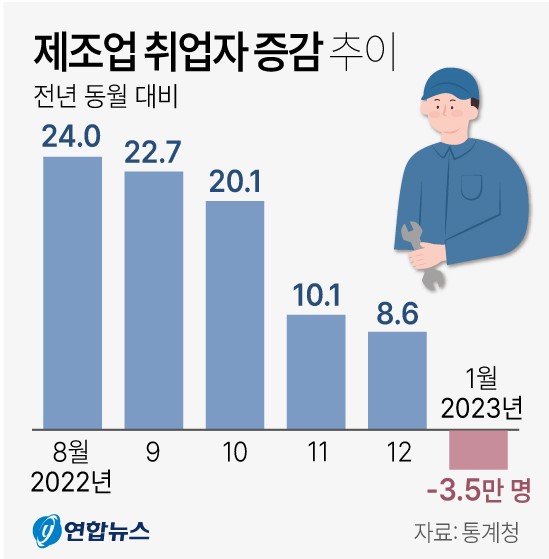 제조업 취업자가 전년 동월 대비 감소한 것은 2021년 10월(-1만 3000명) 이후 15개월 만에 처음이다.
