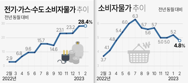작년 11월과 12월에는 두 달 모두 5.0%를 기록했으나, 올해 1월에는 전기요금 인상의 영향으로 다시 5.2%로 상승했었다.