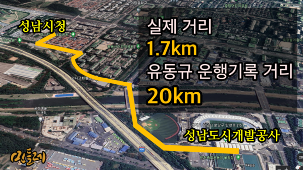 아울러 "성남도시개발공사와 성남시청 간의 거리는 편도 1.7km로 차량으로 5분 거리"라며 "그런데 검찰이 증거로 제시한 운행일지에는 그 거리가 20km라고 기록돼있다"고 지적했다. 변호인단은 "왕복으로 치더라도 3~4km로 기록돼야 정상"이라며 "해당 운행일지가 유류비 등 차량 괸리비용을 맞추기 위해 허위로 가공된 기록으로 보인다"고 주장했다.