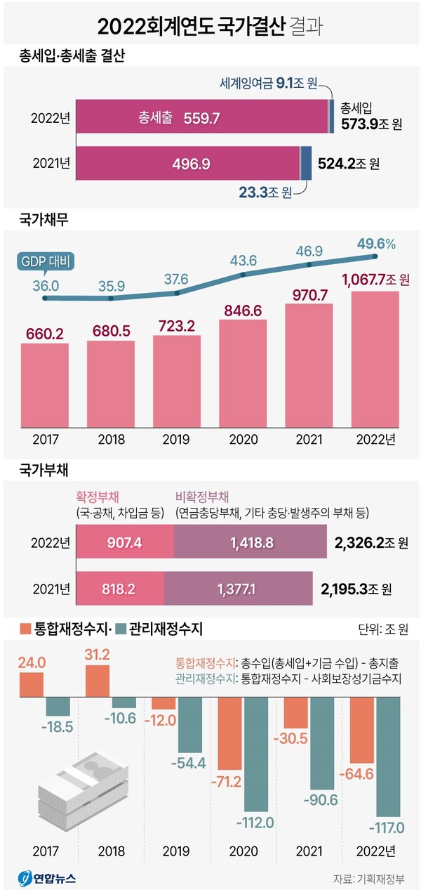이처럼 세수가 세입 예산 대비 10조 원 넘게 모자라는 세수 결손 상황은 2014년(최종 예산 대비 세수 10조 9000억 원 미달) 이후 처음이다. 이런 추세로 간다면 올해 세수는 지난 2019년(-1000억 원) 이후 4년 만에 처음으로 전년 대비 감소를 기록하게 된다.