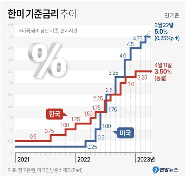 - 기준금리 3.5% 또 동결…미국은 추가 인상 예정