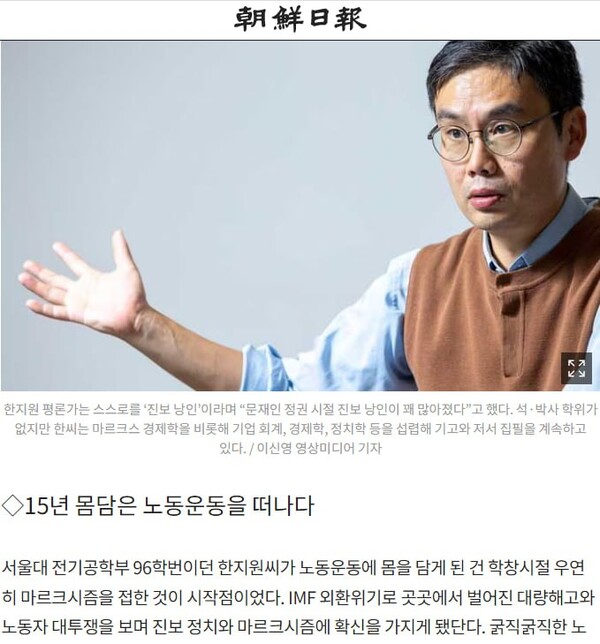 이처럼 언제나 예상을 뛰어넘는 <조선일보>를 꾸준히 보다 보면 몇 가지 패턴을 발견할 수 있는데 그중 하나가 노동운동과 시민운동 출신 인사들의 입을 빌려서 함께하던 곳에 침을 뱉고 공격하게 만드는 것이다. 그래서 과거에 '운동권'이었지만, 지금은 그곳을 욕할 준비가 돼 있는 사람들은 높은 몸값을 매겨서 모셔간다.