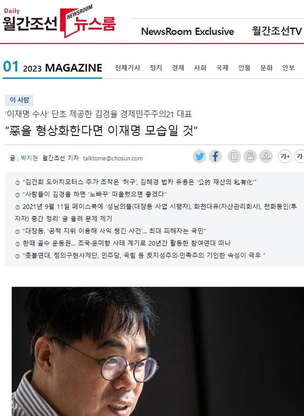 '내부에서 함께 하던 사람들도 시민운동과 노동운동이 사회정의와 인권을 위한 것이 아니라 사실은 위선적 사기꾼과 간첩들의 모임이라고 말한다'는 것을 보여주려는 것이다. 예컨대 김경율 씨의 인터뷰를 실으면서 <조선일보>는 그가 '젊은 시절 화염병을 던졌고, 참여연대에 있었고, 삼성재벌과 싸웠다'고 강조했다. 그러면서 '용기 있는 양심적 내부고발'이라고 포장한다.