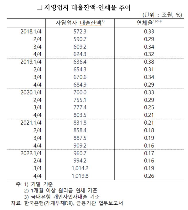 - 자영업대출 1천조원 돌파…내년말 40조원 부실 가능성
