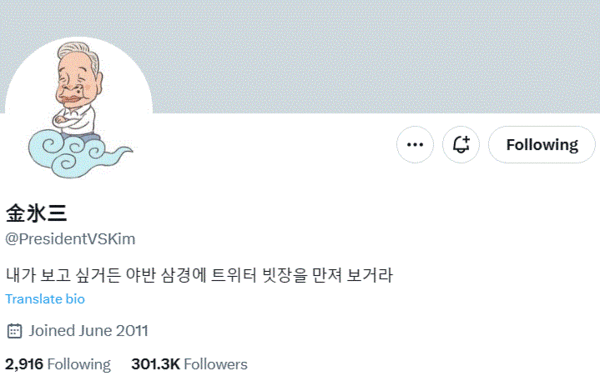 김영삼(金泳三) 패러디한 필명…팔로워 30만 넘어