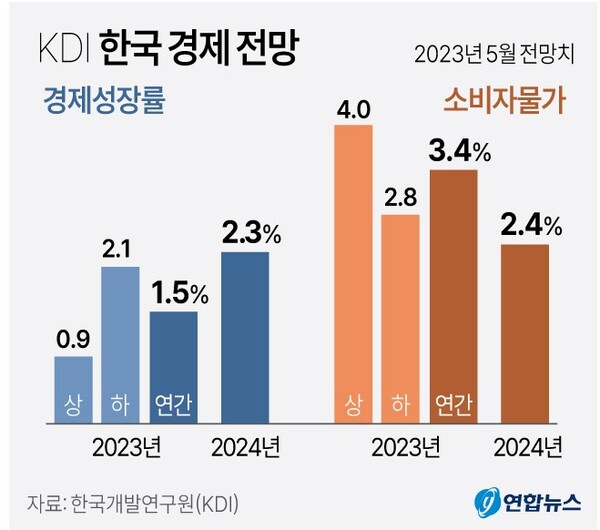 KDI는 이를 토대로 내년 성장률 전망치를 2.3%로 전망했다.