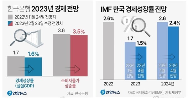 KDI는 11일 발표한 '2023년 상반기 경제전망'에서 올해 한국 경제 성장률 전망치를 지난 2월 수정전망 때 내놓은 1.8%에서 1.5%로 다시 수정했다.