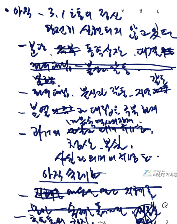 메모만으로 즉석 연설도…급하게 작성하고 퇴고한 흔적