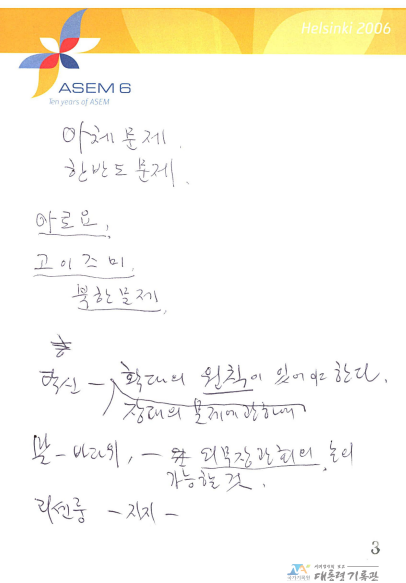 2006년 9월 핀란드 헬싱키에서 열린 제6차 아셈 정상회의에 참석해 남긴 메모입니다.