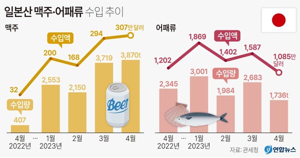 지난달 일본 맥주 수입액과 수입량은 일본이 우리나라에 대한 수출규제를 시작한 2019년 7월 이후 최대다. 일본 정부는 한국 대법원의 강제징용 피해자 배상 판결에 불만을 품고, 2019년 7월 반도체와 디스플레이 소재 등에 대한 한국 수출규제에 나섰다.