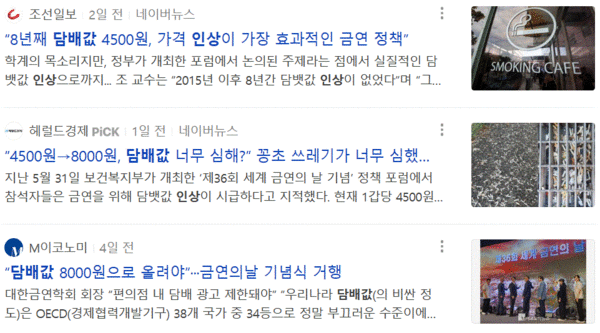 “4500원→8000원, 담배값 너무 심해?” 꽁초 쓰레기가 너무 심했지