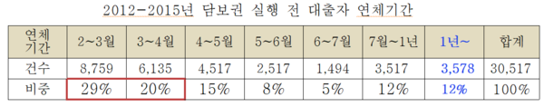 국회 정무위에서 활동할 당시 이와 관련한 현황을 분석해 보았다. 2012년부터 2015년까지 4년 간 담보대출의 부실채권은 총 6만 4870건이다. 이중 은행이 임의경매로 처분한 주택은 5만 1243건으로 부실채권의 약 78%에 달했다. 이때 담보권이 실행된 3만 517건을 연체기간별로 구분해 보면, 3개월 이내 연체한 비중이 29%, 3~4개월이 20%였다. 임의경매로 처분된 담보대출의 절반 가량이 연체 4개월 이내의 채권이다. 몇 년을 열심히 갚았든 간에 연체가 시작되고 겨우 4개월 만에 채무자들은 집을 빼앗기게 된다.